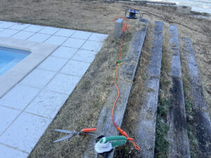 指先が冷たくなる作業ではありますが、雑草がなくなるにつれてプールサイドの輪郭がはっきりとし、景色全体の解像度が上がっていくような感覚は、この仕事の醍醐味でもあります。