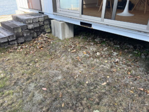 建物の陰やデッキの隙間に顔を出した雑草や、冬の風で運ばれてきた落ち葉を一つひとつ丁寧に除いていきます。