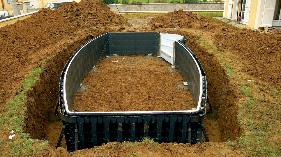 施工時には、このケーシングを設置した後、チムニー部分にコンクリートを打設することで、プール全体が強固な一体構造を形成します。