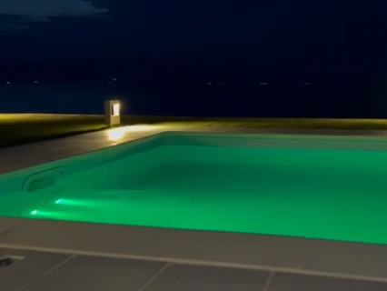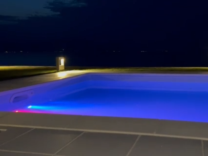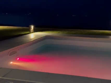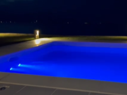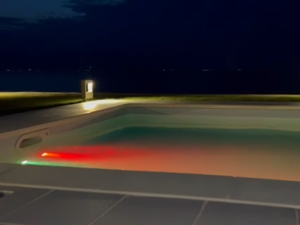 ・幻想的なナイトプール:水中照明が夜の庭をラグジュアリーな空間に変えます。